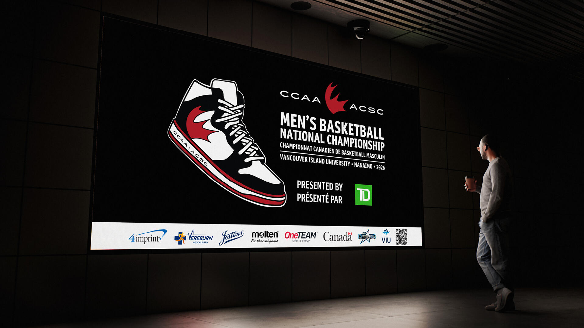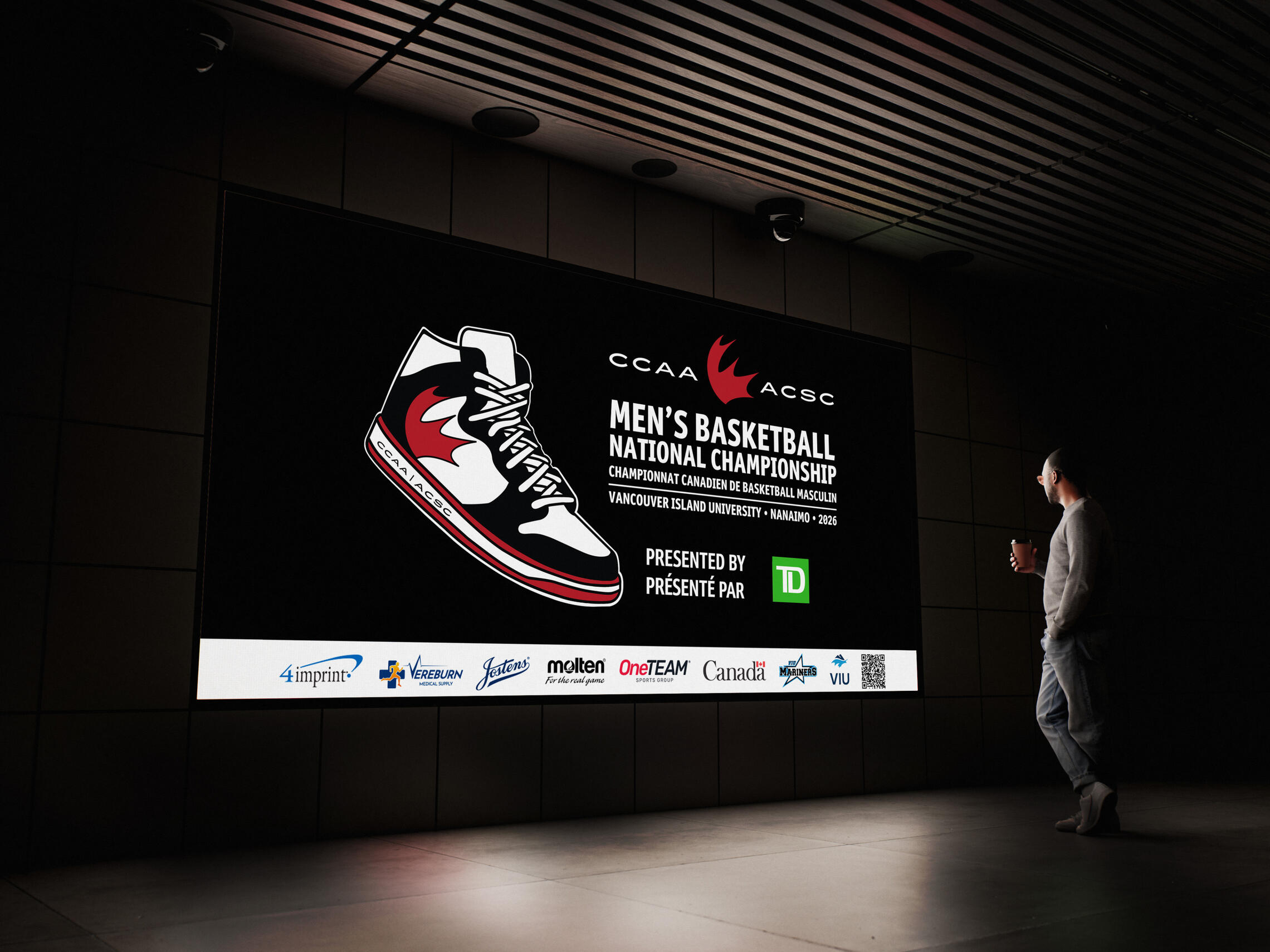 As part of my internship with the VIU Mariners Athletics and Recreation department, I developed the event branding system for the CCAA Basketball Nationals 2026, a national collegiate championship hosted by Vancouver Island University.This project required building a visual identity that could capture the intensity of championship-level basketball while remaining flexible enough to function across physical, digital, and environmental touchpoints. The final system was designed to support the full event experience—from pre-event promotion and social engagement to on-site wayfinding and tournament credentials.