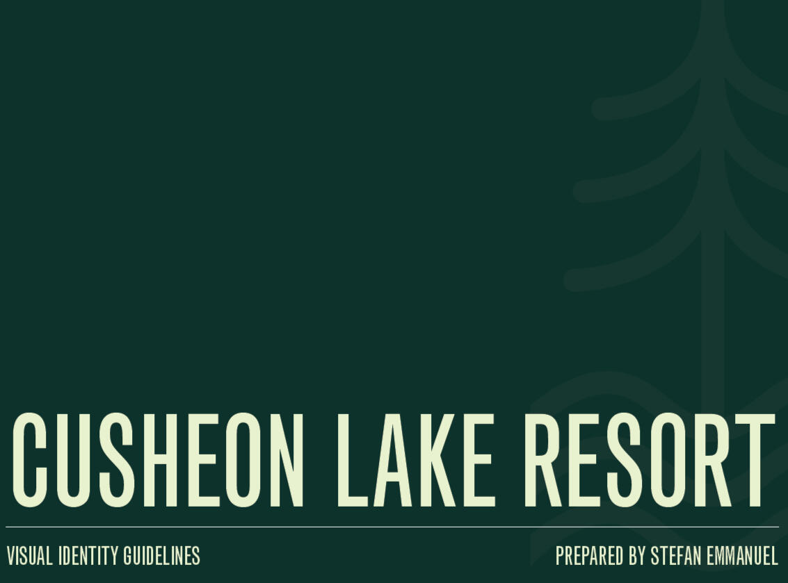 The challenge was to create a brand identity for Cusheon Lake Resort that captures the calm, natural experience of the location while remaining clear, modern, and adaptable across multiple applications.The identity needed to communicate a sense of place rooted in nature and relaxation while functioning across signage, promotional materials, and digital platforms. The main question became: how can a visual identity reflect a physical environment without feeling overly literal or decorative?